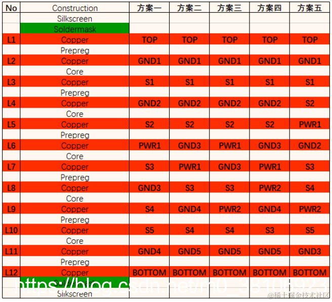 12层板优选叠层方案主要有五类: