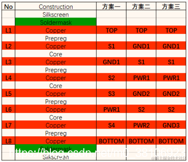 8层板优选叠层方案主要有三类: