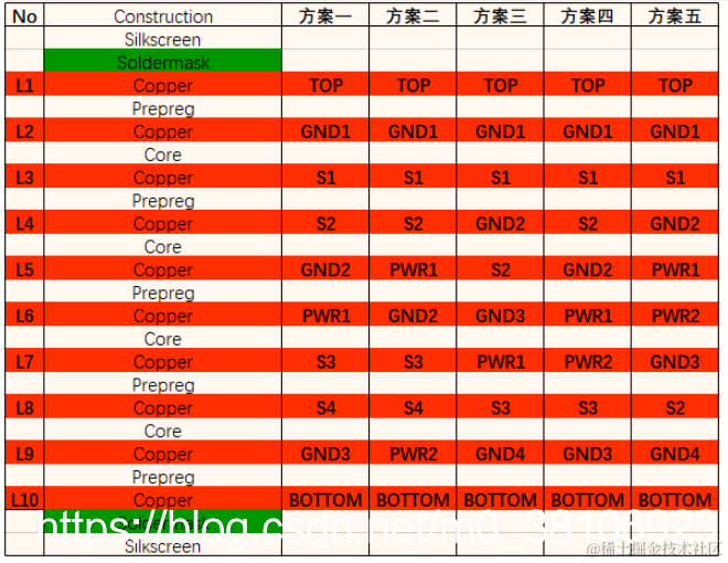 10层板优选叠层方案主要有五类: