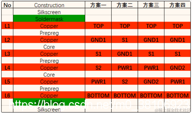 6层板优选叠层方案主要有三类: