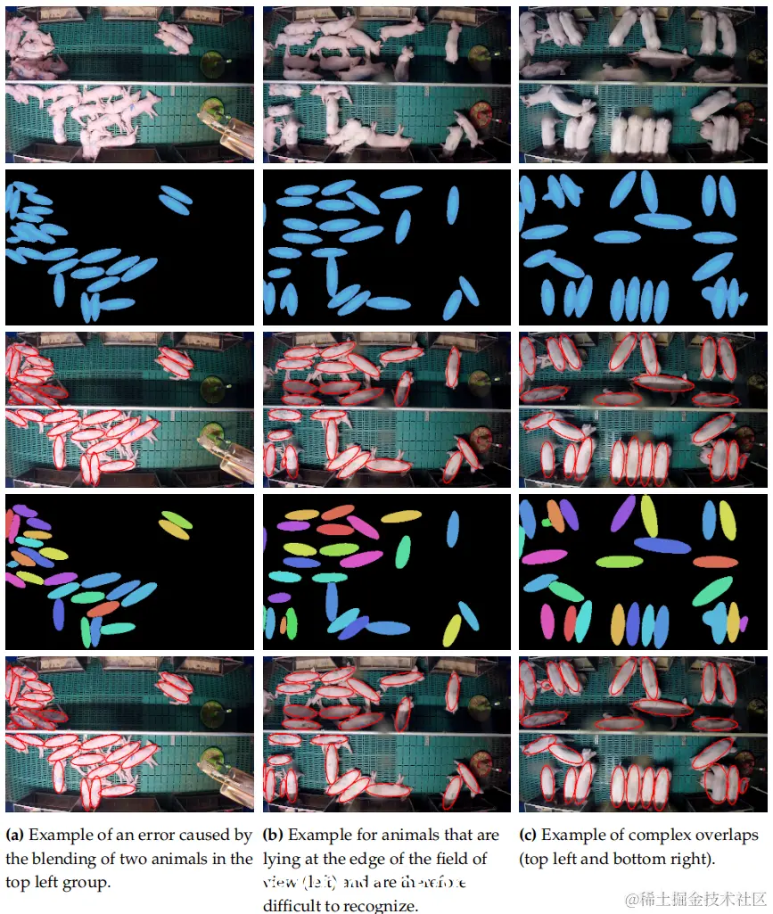 长时间观察动物的行为很难人工完成,因此通常情况下采取的方案是使用基于传感器的自动化系统。近年来,基于深度学习算法的应用案例,取得了令人满意的效果,特别是物体和关键点探测器已经被用来检测单个动物。尽管效果很好,但边界框和稀疏关键点并不能跟踪动物的轮廓,导致大量信息丢失。因此,德国基尔大学和哥廷根大学的专家研究出一套应用在养猪场的全景分割系统,采用相对较新的全景分割技术,旨在精确分割每头猪猪。