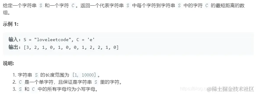第1题:字符的最短距离