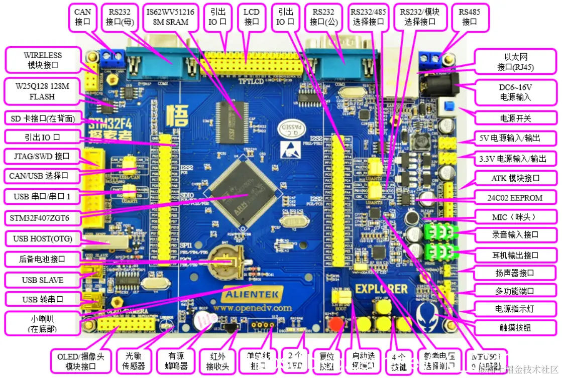 ALIENTEK探索者STM32F4开发板,资源十分丰富,并把STM32F407的内部资源发挥到了极致,基本所有STM32F407的内部资源,都可以在此开发板上验证,同时扩充丰富的接口和功能模块,整个开发板显得十分大气。