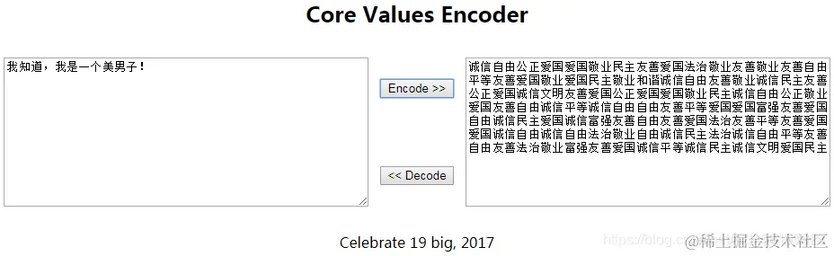 该项目使用社会主义核心价值观作为编码器,旨在通过编程学习党的十八大提出的社会主义核心价值观。