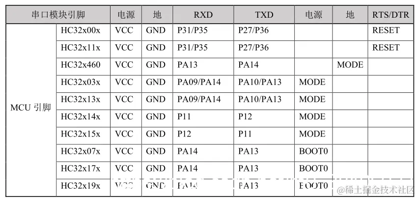 HC32L136就采用以下连接方式(RXD和TXD两组不一定都有效,像我用的HC32L136,RXD:PA14和TXD:PA13就无法打开串口):