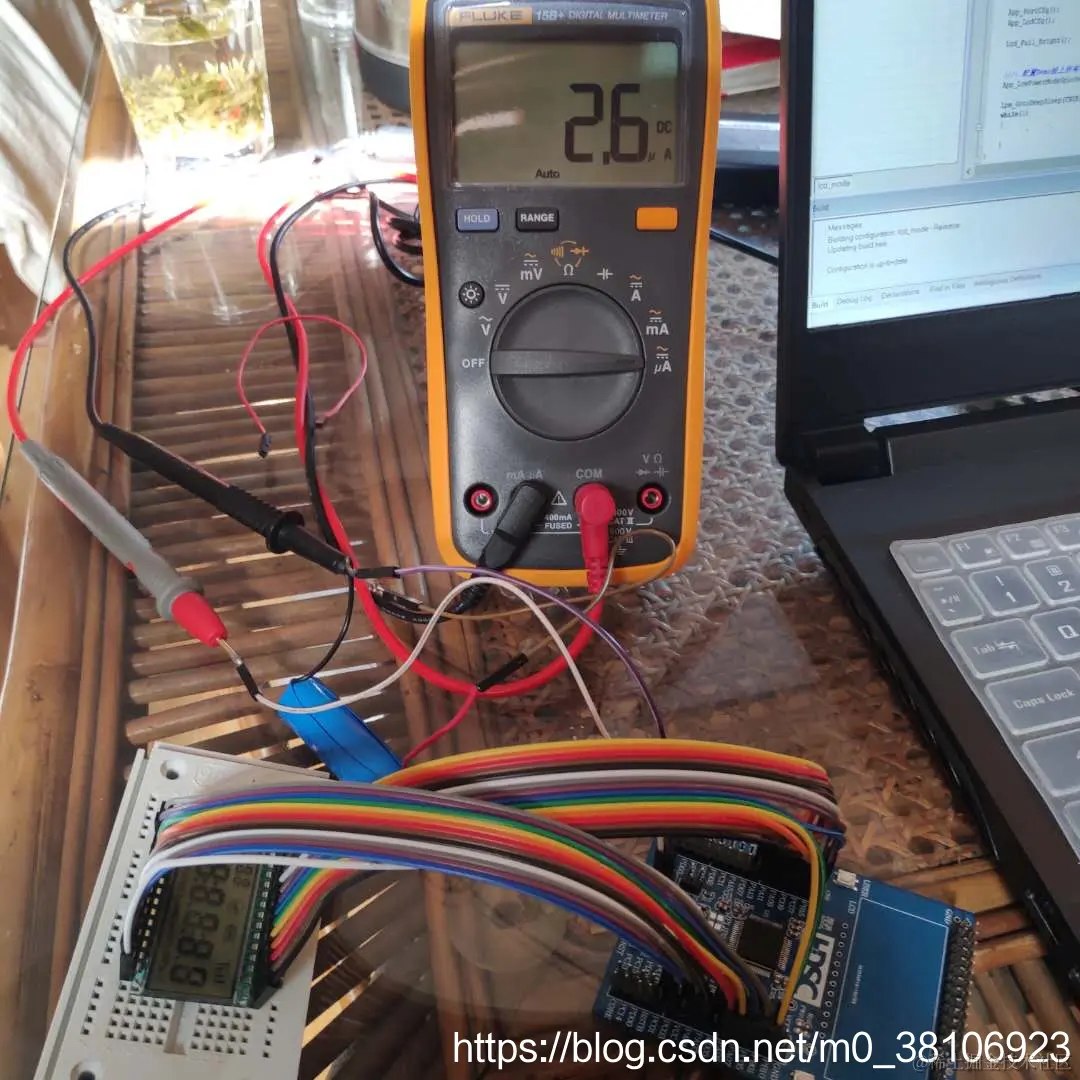 使用低功耗设计后,耗能约为2.6微安,极大降低了功耗,如下图所示: