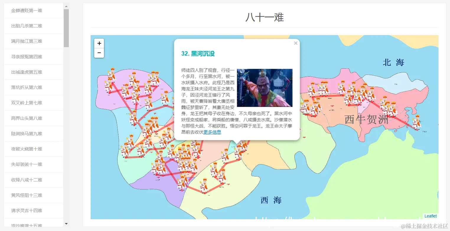 可以详细看到西游记的取经路线、九九八十一难的地点和大唐疆域图。