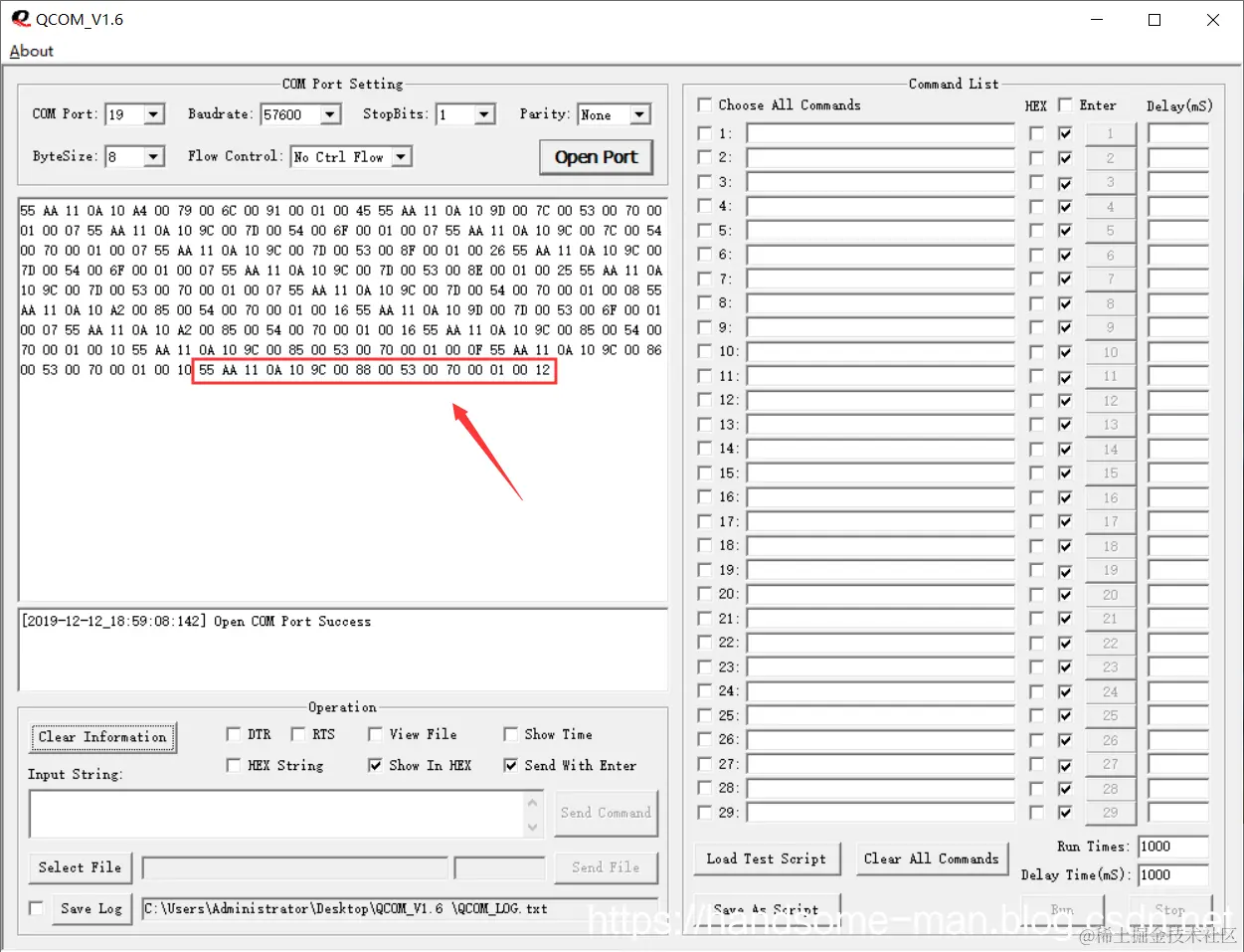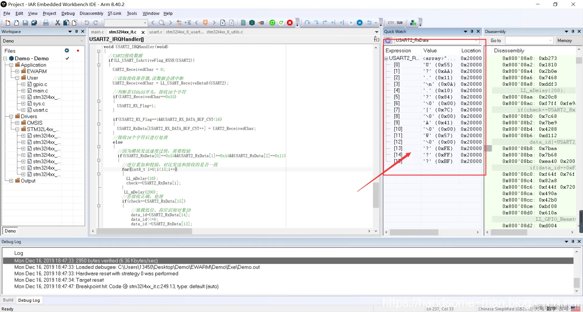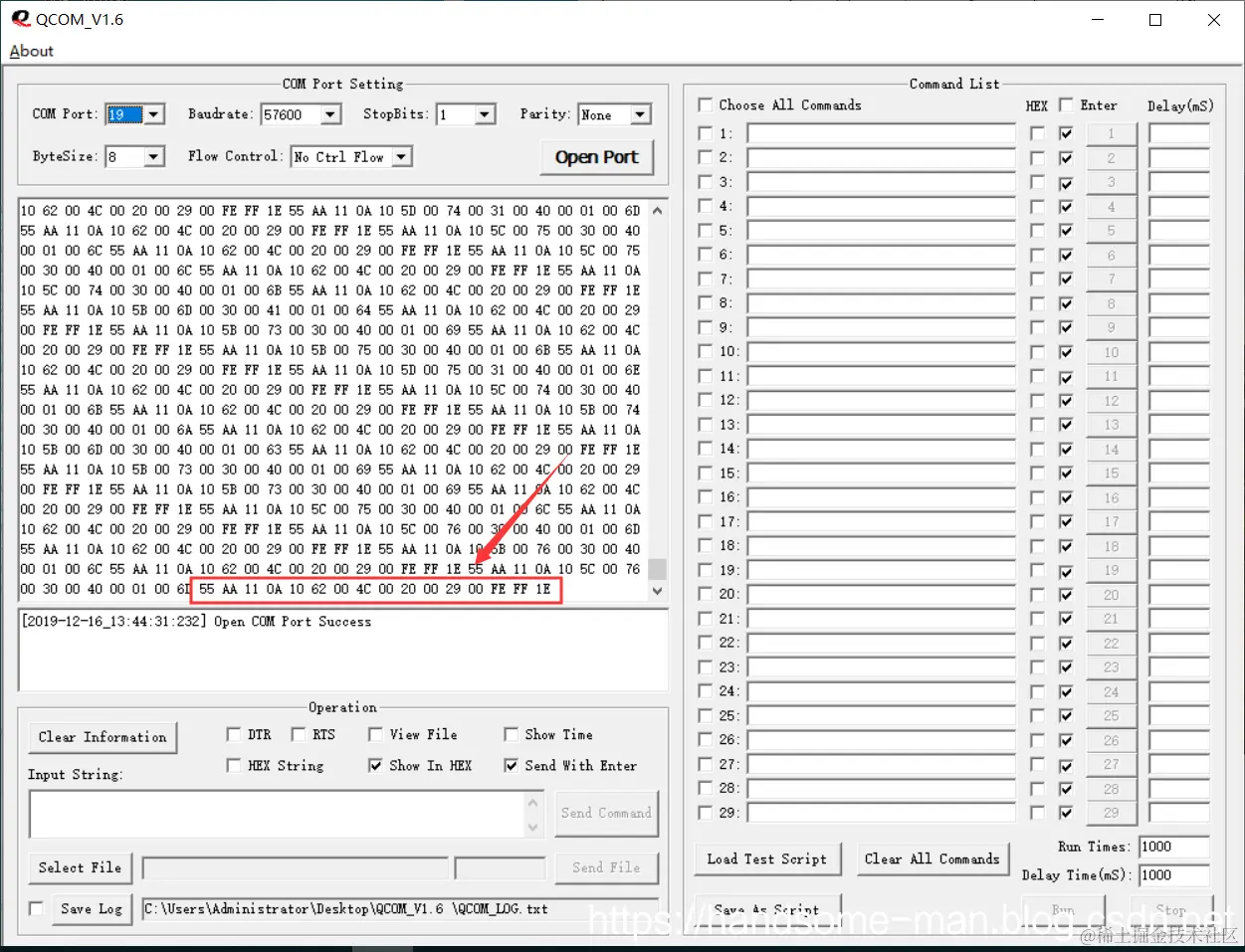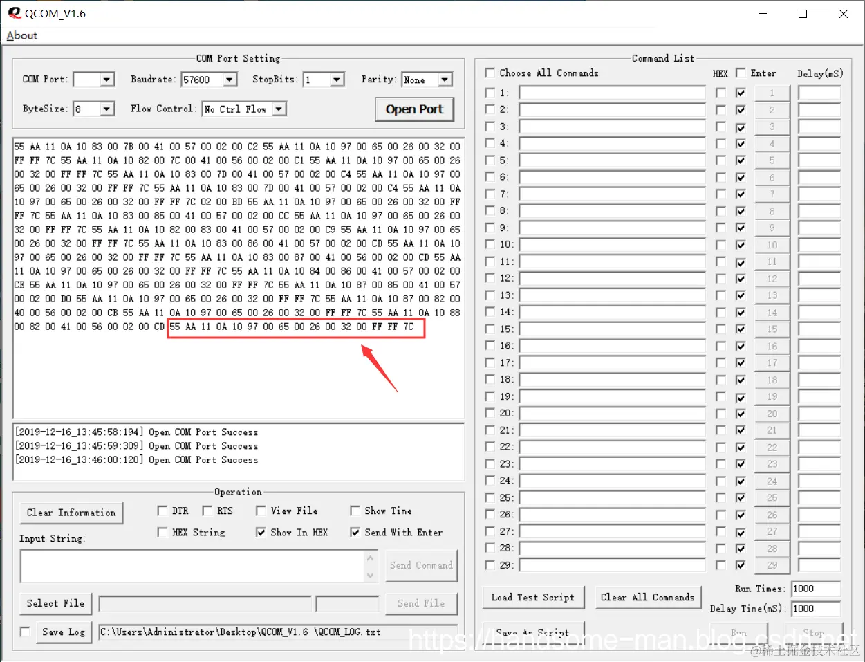 通过设定断点可以看到每一次的上次数据和发送到串口调试助手的一致。
