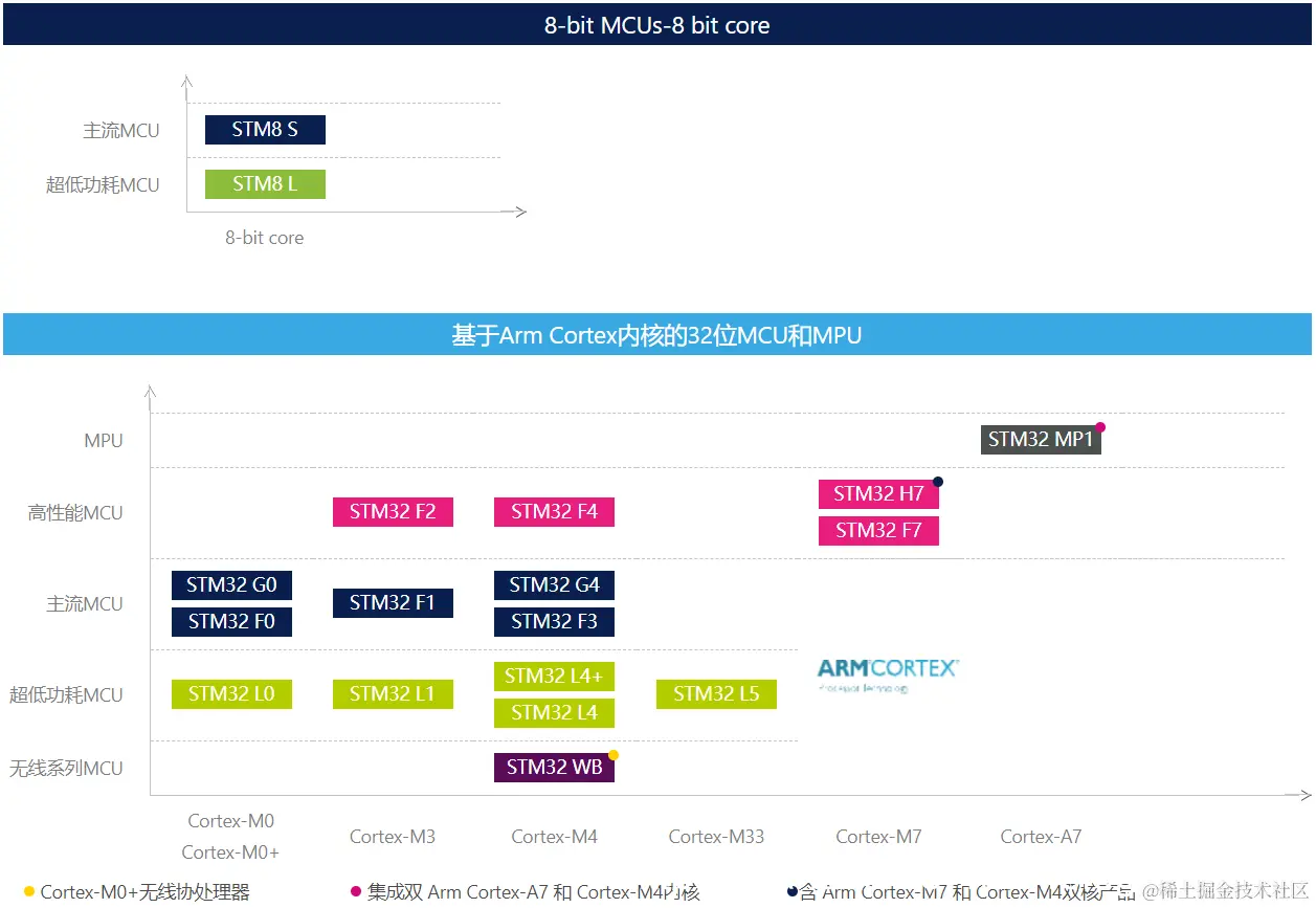 以ARM系列芯片为主,将其主流芯片进行划分,具体如下:
