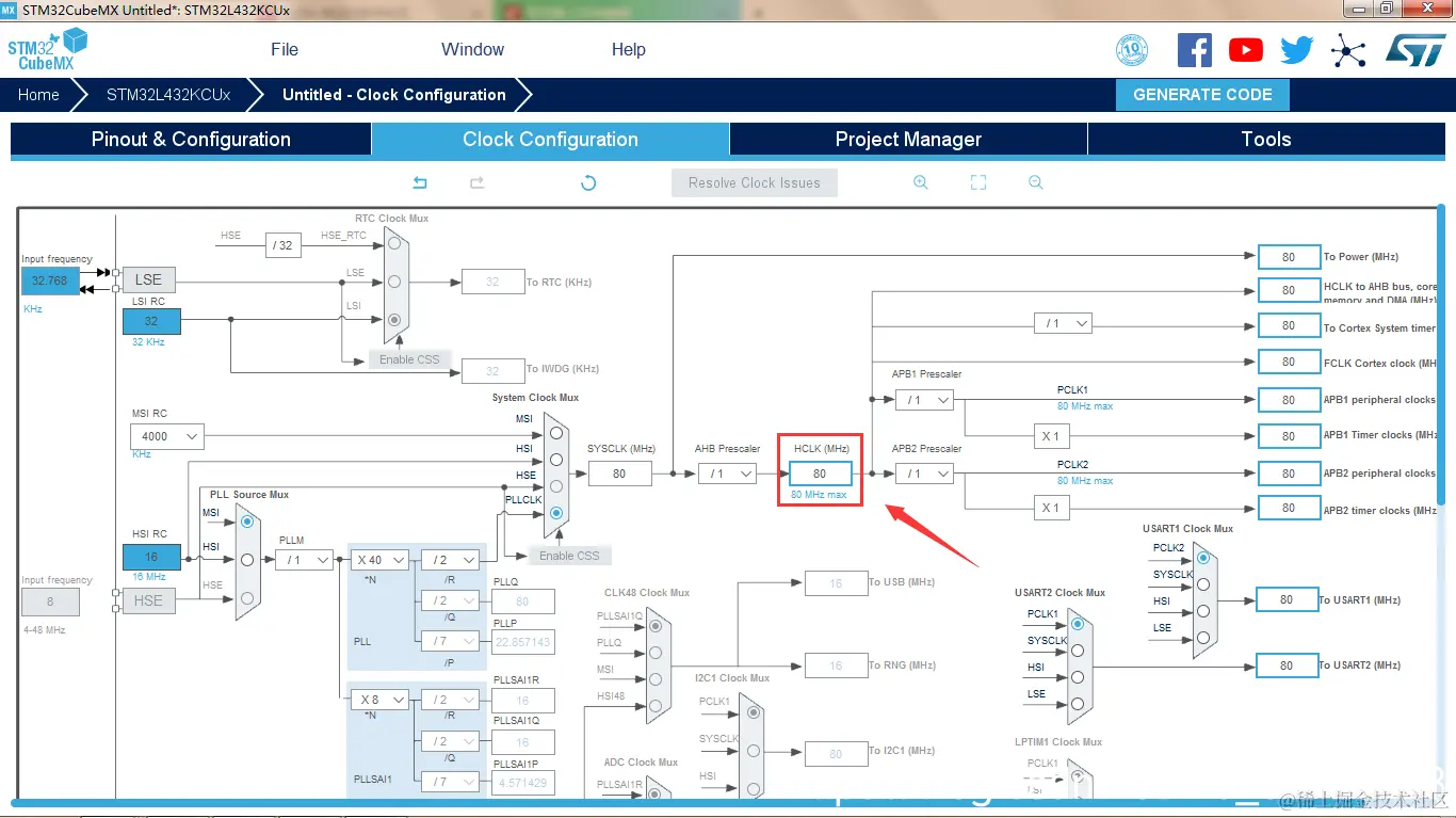 第4步:配置晶振为80MHZ。