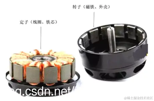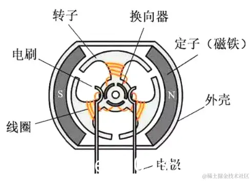 有刷电机是大家最早接触的一类电机,中学时物理课堂上介绍电动机也是以它为模型来展示的。有刷电机的主要结构就是定子+转子+电刷,通过旋转磁场获得转动力矩,从而输出动能。电刷与换向器不断接触摩擦,在转动中起到导电和换相作用。
