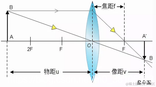 这里要注意,选择镜头的时候,还要注意视场角,(假设市场大小为2Ax2B)