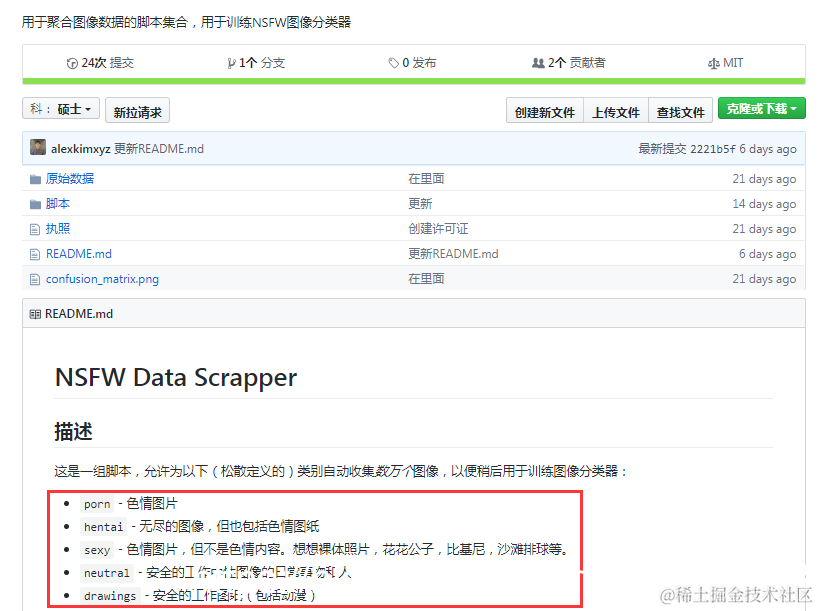 这个项目的用途其实倒是挺多的,比方说用来识别色情照片,用来识别视频中的色情片段做敏感内容过滤。或者是用来训练图像分类器。建议大家把这个项目给下载下来自己练练手。
