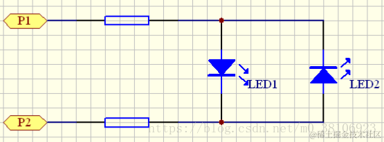 Charlieplexing 最简单的形式如图 1 所示,是使用 LED 的互补对称矩阵。