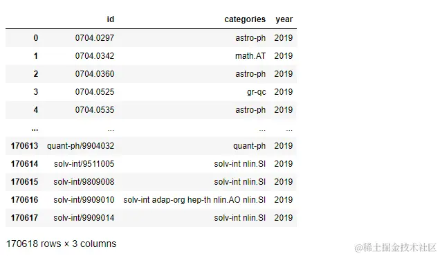 data = readArxivFile('arxiv-metadata-oai-snapshot.json', ['id', 'categories', 'update_date'])