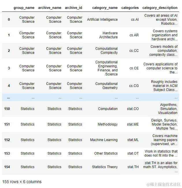 链接:arxiv.org/help/api/us… 的 5.3 小节的 Subject Classifications 的部分,或 arxiv.org/category_ta…, 具体的153种paper的类别部分如下: