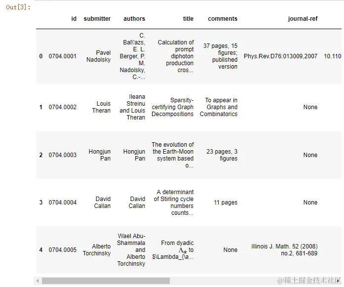def readArxivFile(path, columns=['id', 'submitter', 'authors', 'title', 'comments', 'journal-ref', 'doi',