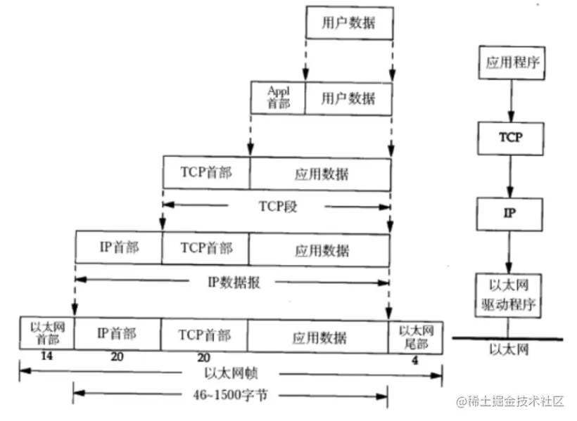 而接收端接收数据的时候,数据会从下层传输到上层,传输前会把下层的头部信息删除。