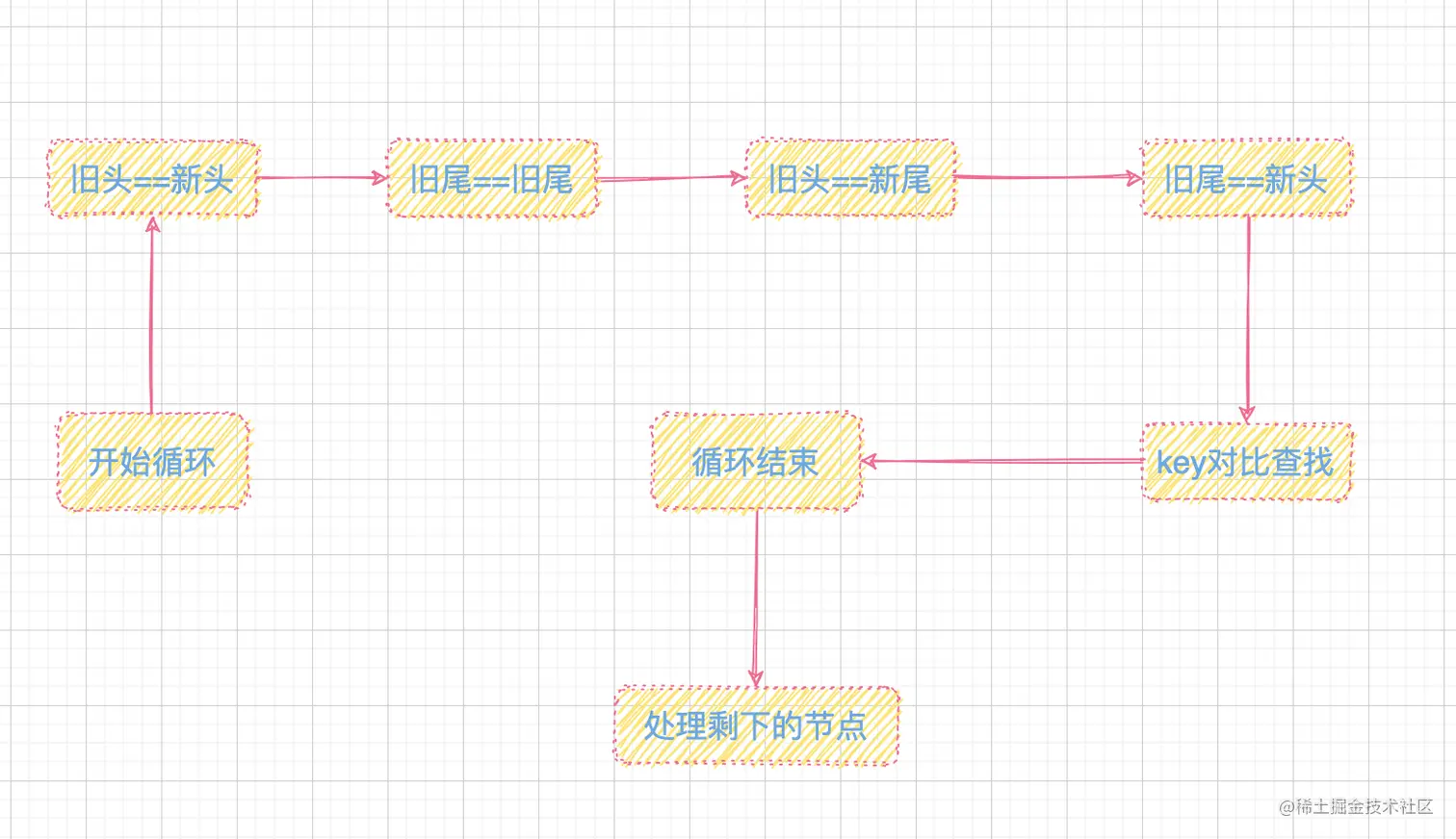 开始循环新老节点,有一方循环完毕就结束