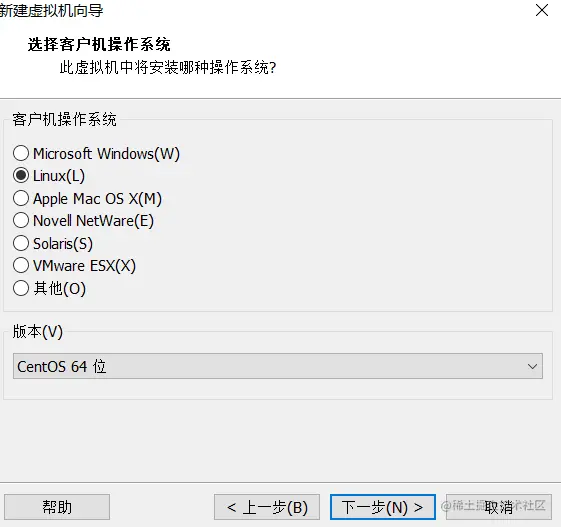 选择Linux,和CentOS 64位,点击下一步: