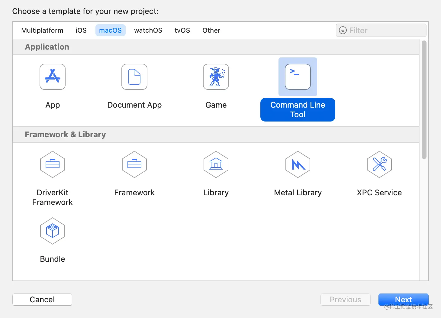 2.在跳出的弹框里选择 Command Line Tool,然后点击 Next