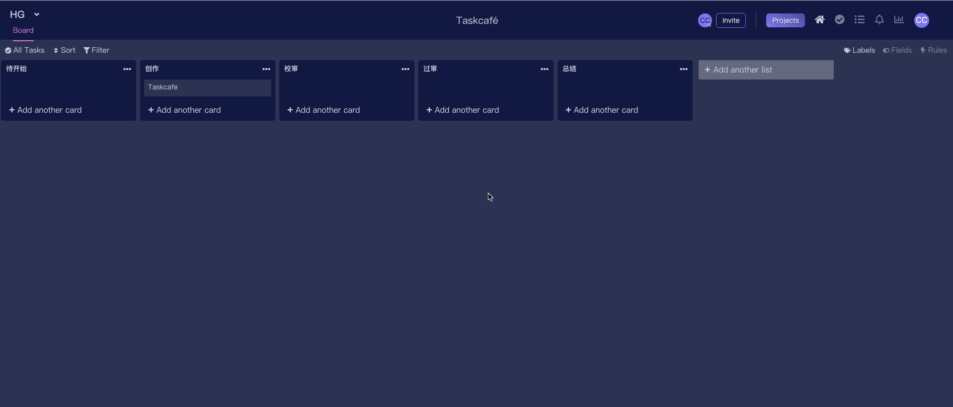 在项目管理工具中最常用的视图模式就是看板了,所以看板也被称为项目管理工具中的黄金圣杯。使用 Taskcafe 可以让我们轻松的将周身事物看板(任务),万物皆可放入看板。