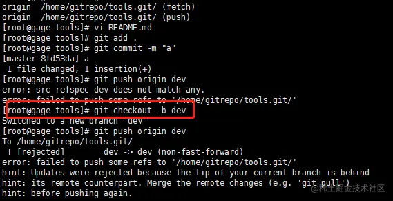 在本地创建dev分支,需要 git push origin dev 同步到远程