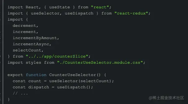 2.使用方式为 const count = useSelector(selectCount);