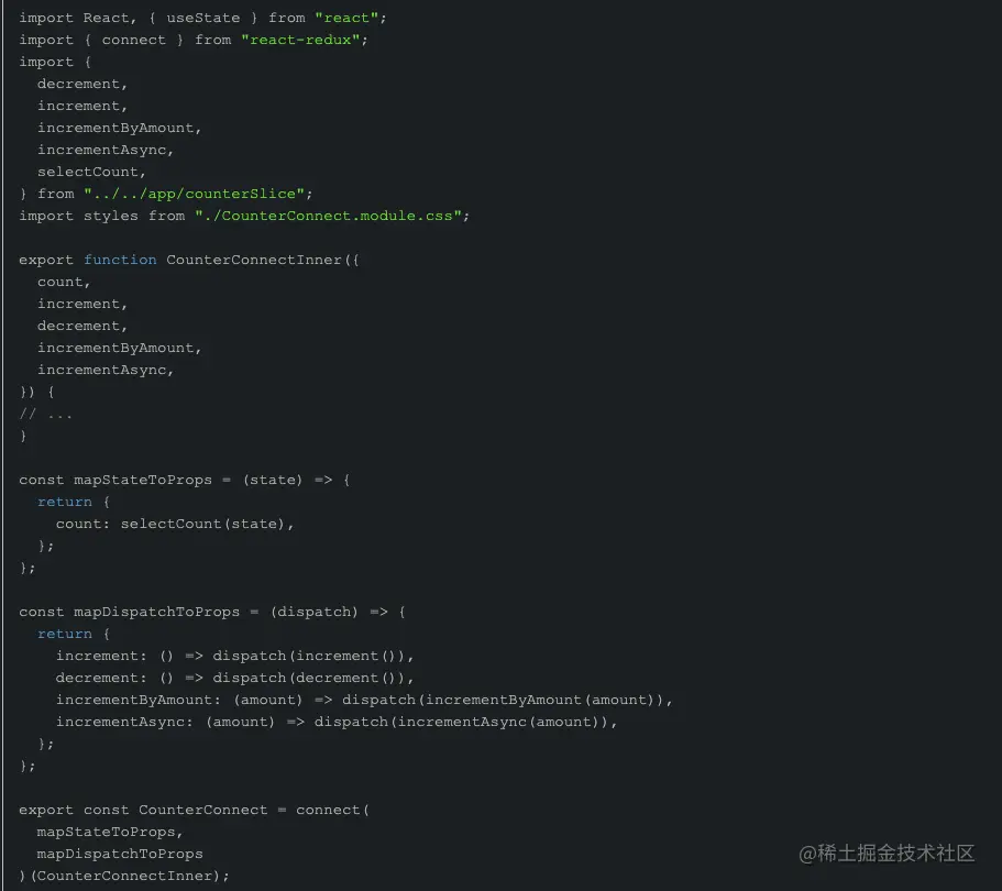 hooks出现后,react-redux提供了useSelector等hooks,作为可以替代connect()高阶组件方式的一种选择。这些hooks可以让我们订阅Redux store和dispatch actions,而不用connect()来包裹我们的components。下面是使用hooks实现的方式: