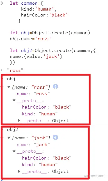 let obj2=Object.create(common,{