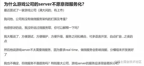 今天在知乎上看到这样一个问题:"为什么游戏公司的 Server 不愿意微服务化?
