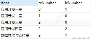 SELECT a.dept,a.rcNumber,0 as lcNumber FROM (SELECT dept ,COUNT(1) rcNumber FROM 员工表