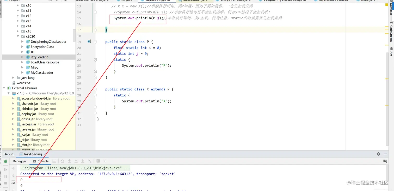 System.out.println(P.j);//单独执行词句:类P加载,特别注意,static的时候需要先加载此类