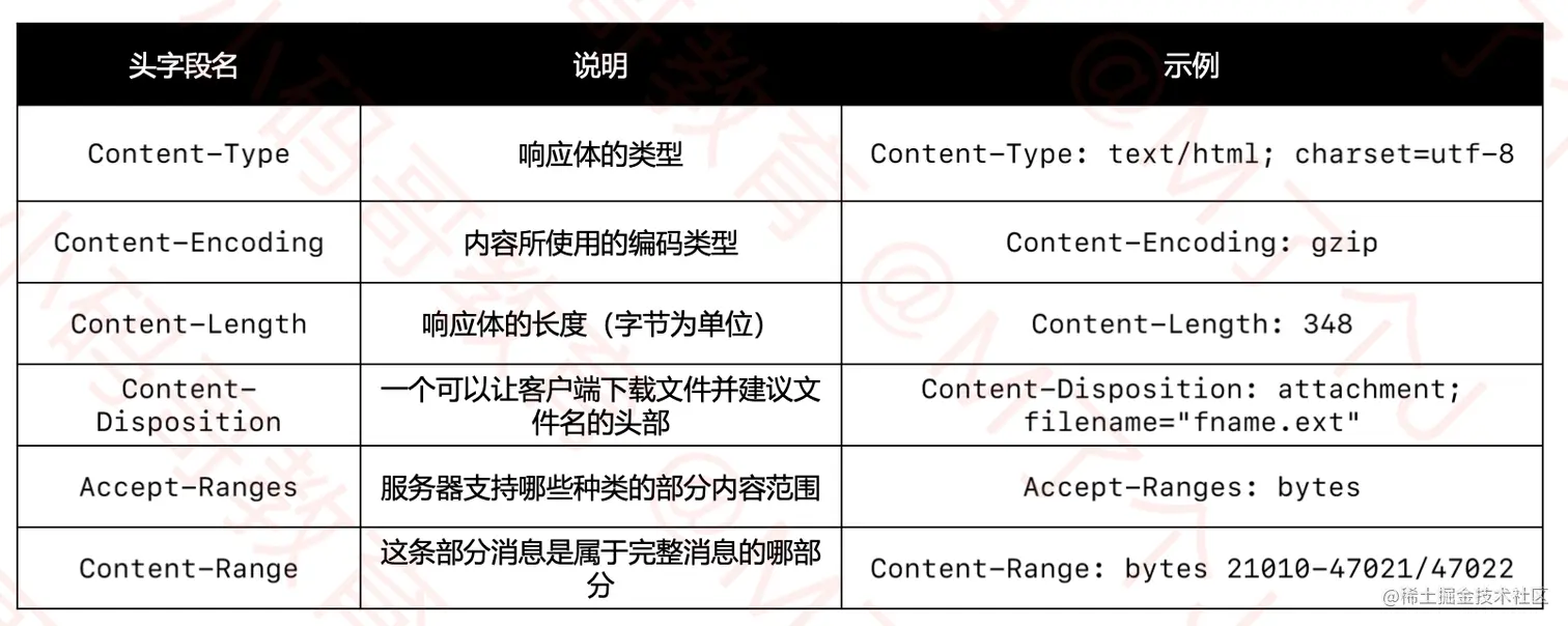 (Entity Header Fields)- 有关实体主体的更多信息,比如主体长度