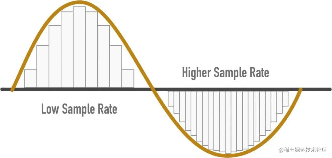 一般情况下录音设备决定了一个音频采样率的上限。生活中,打电话和播放一首高清音乐就能体现出采样率的不同,我们明显能听出来高清音乐更加的”清晰“,更好的还原出声音,这是因为电话麦克风采样率一般为8000赫兹左右,而一首音乐是在专业的录音棚中由专门的录音设备录制,采样率通常是数万赫兹。