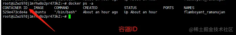 docker ps查看正在运行的容器,我已经创建好了容器所以截图里有容器 -