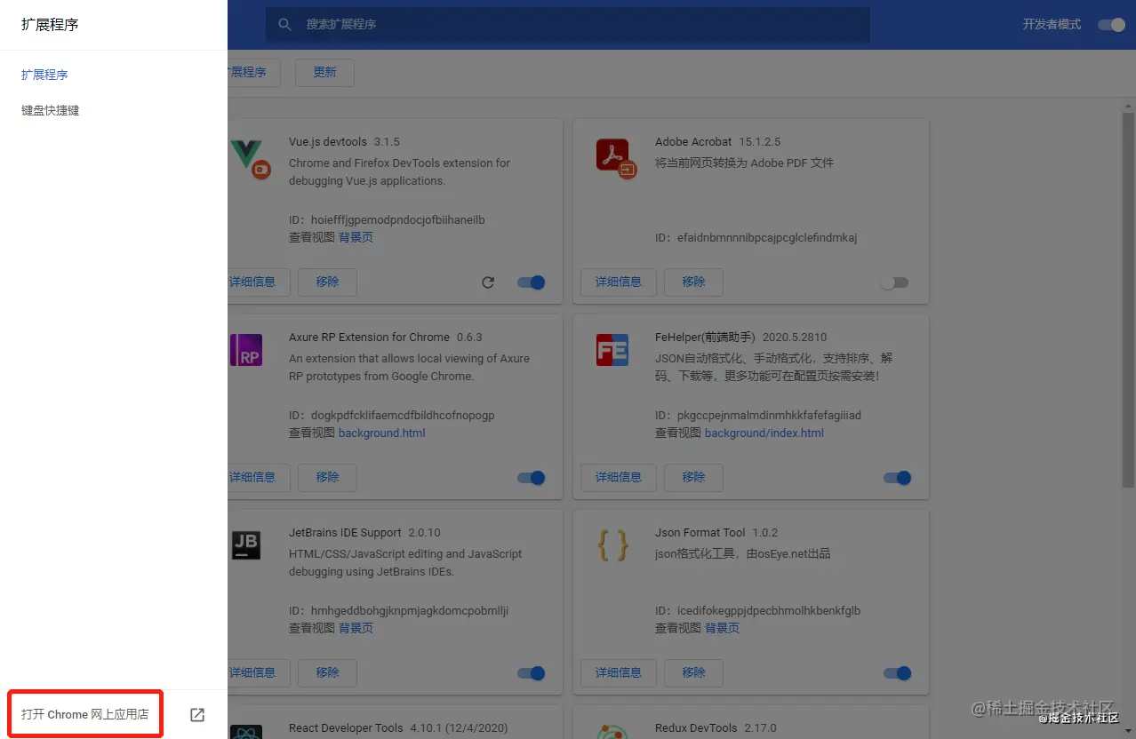 地址栏输入 chrome://extensions/ 进入Chrome 扩展程序管理界面