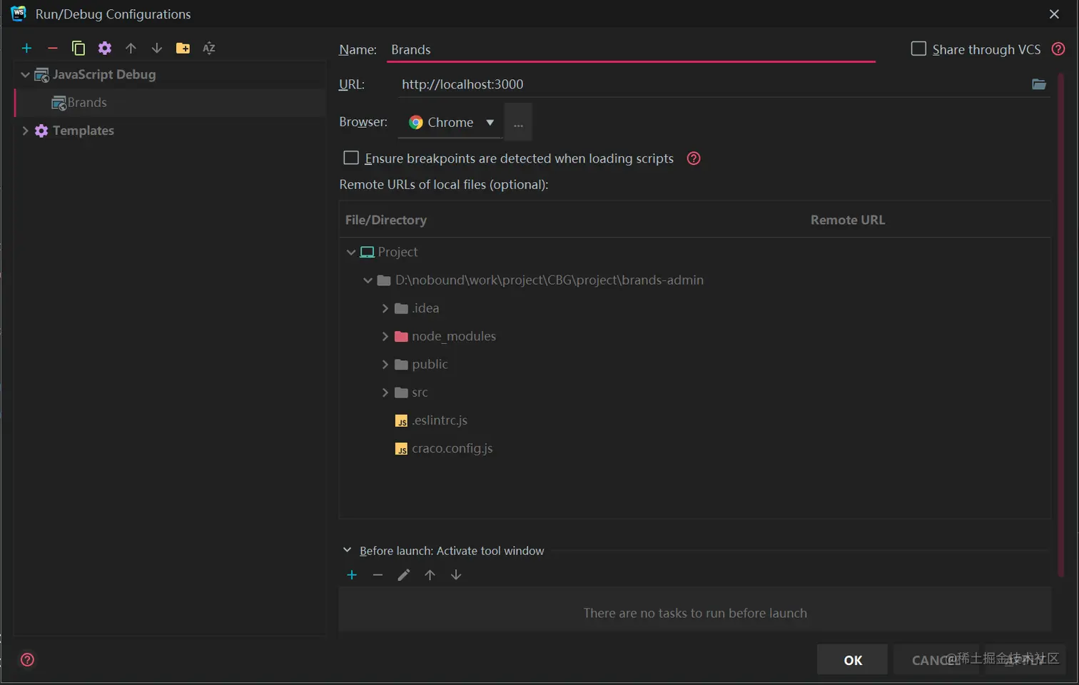 这个是用于在启动 debug 命令前进行启动服务的 命令 , 根据自己项目的启动命令填写