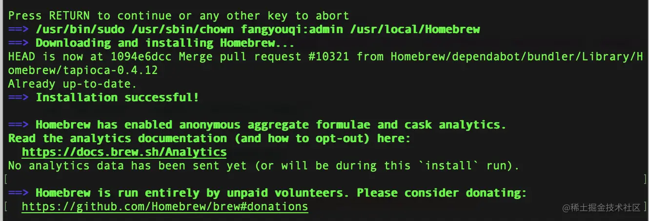 出现 “==> Installation successful!” 就表示安装成功啦!