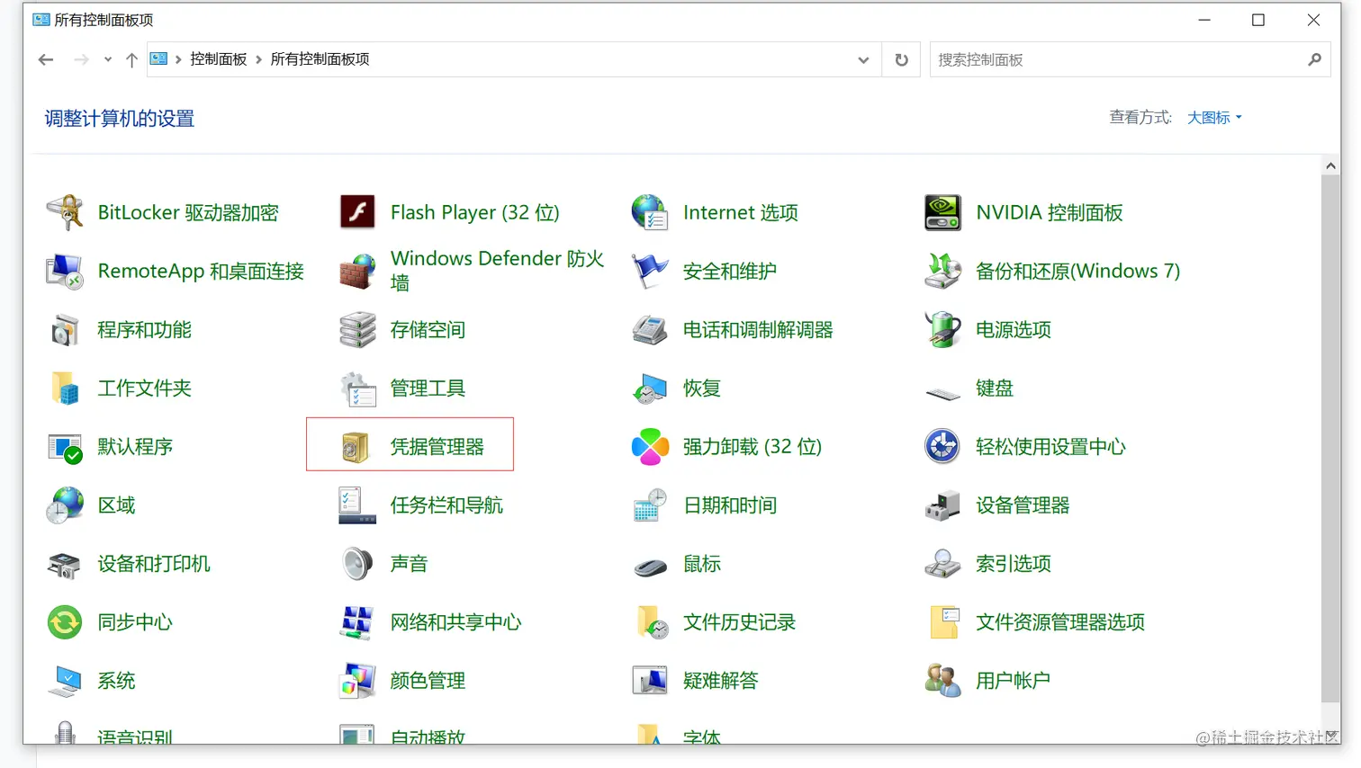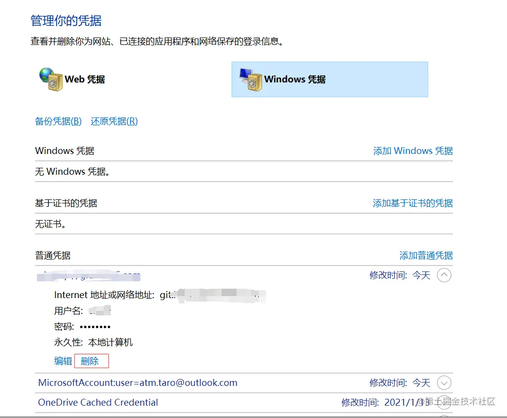 删除凭证,重新输入用户名和密码。也可以通过control打开。