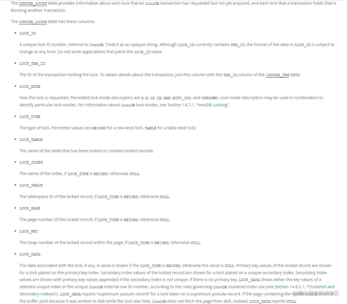 blocking_lock_id:阻塞事务的锁ID。可以和 INNODB_LOCKS 表 JOIN
