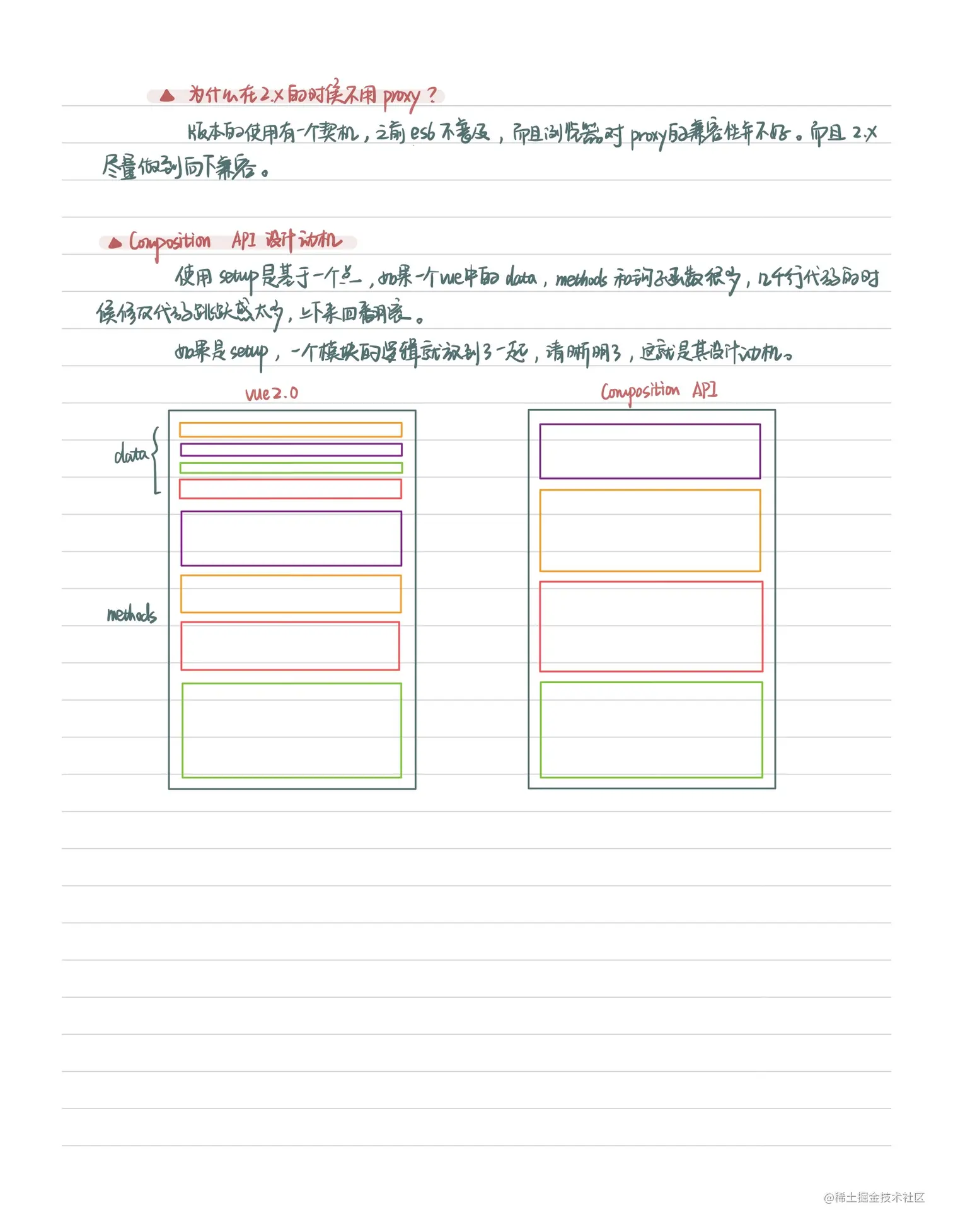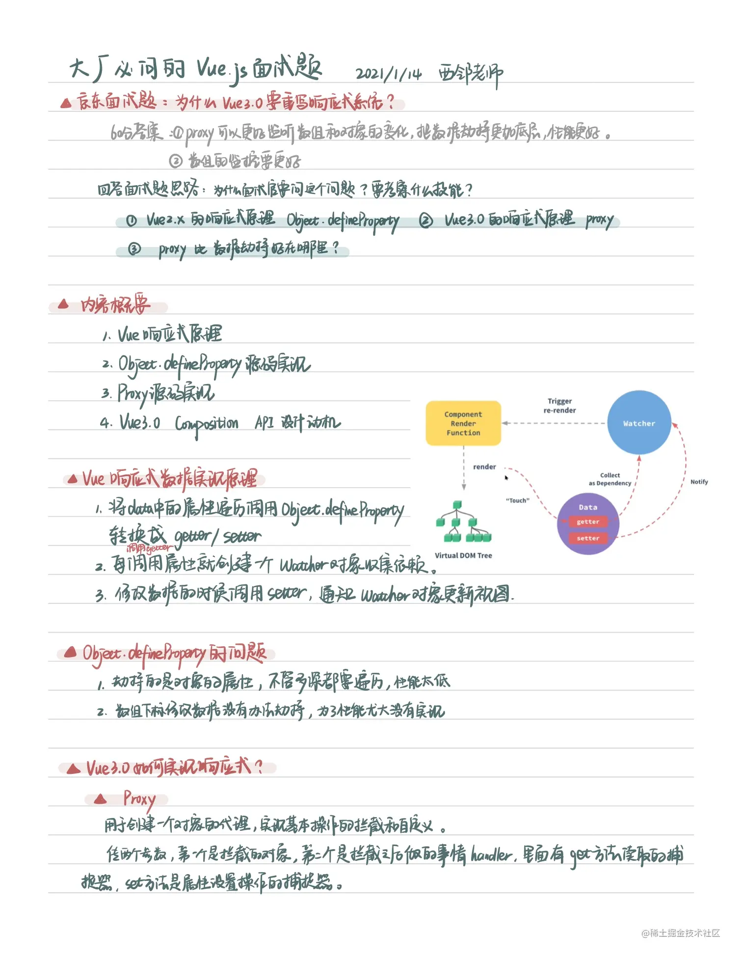 前端学习 —— 为什么Vue3.0要重写响应式系统直播笔记? 顽皮的雪狐七七 2021-01-14 306 阅读1分钟 目录 京东面试题:为什么Vue3.0要重写响应式系统? 内容概要 Vue响应式数据实现原理 Object.defindProperty的问题 Vue3.0如何实现响应式? proxy 为什么在2.x的时候不用proxy? Composition API设计动机 这次直播就围绕一个重要的问题,面对这种面试题我们要怎么回答?到底考察了什么东西,笔记放这里。