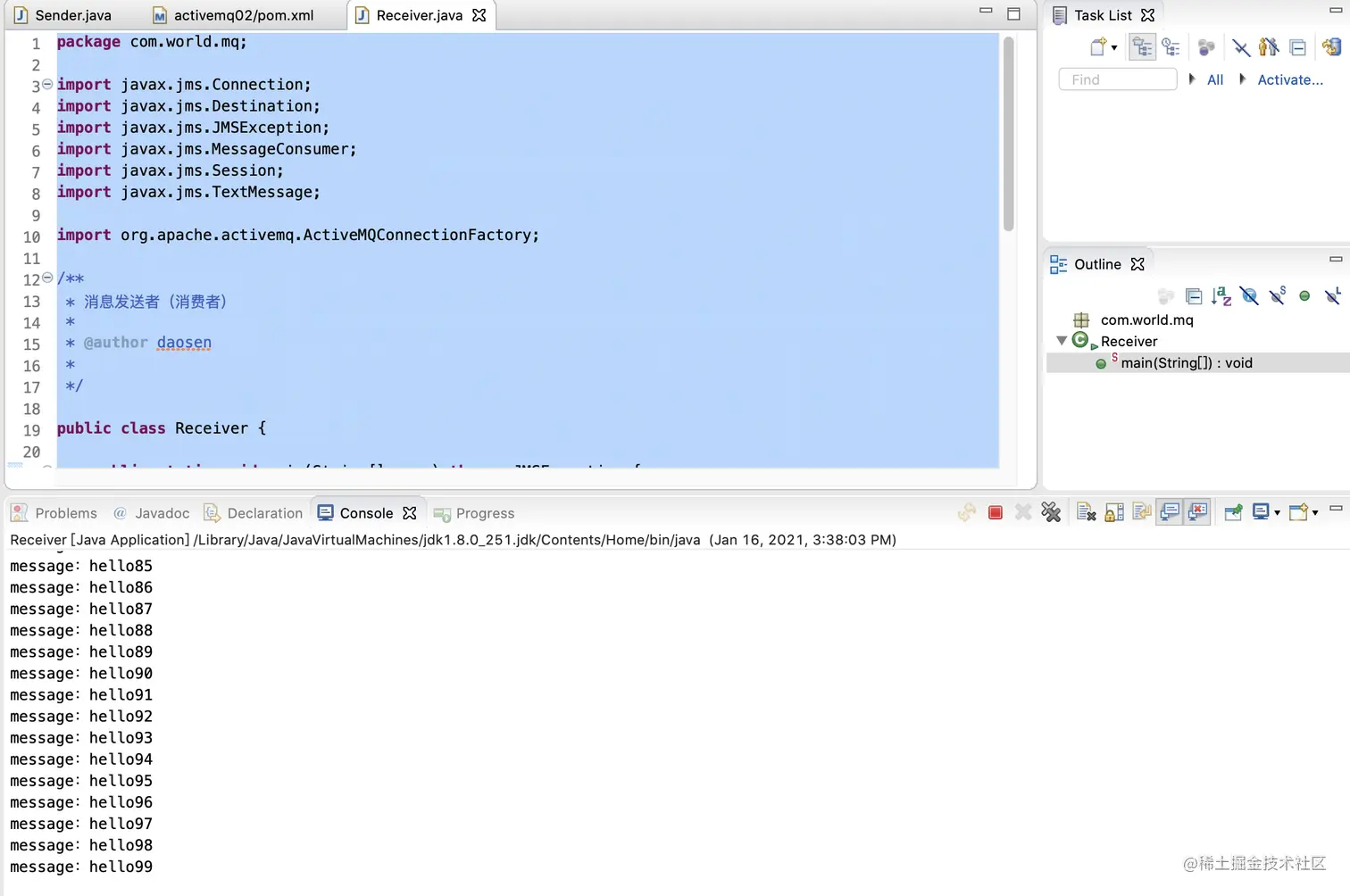 public static void main(String[] args) throws JMSException {