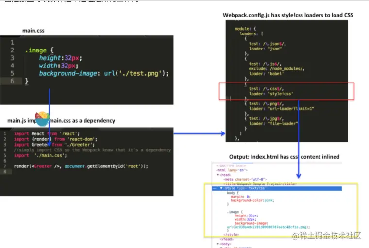 css-loader加载所有的css内容以及该css内容中自己的depency(比如@import othercss),并保存为json. webpack然后将这个结果传给style-loader继续处理。