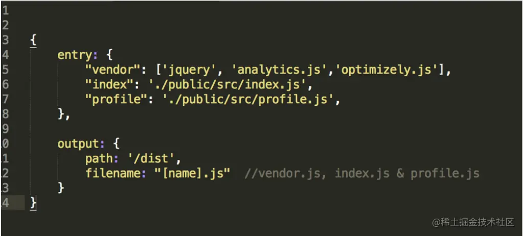 你也可以在object entry中使用array entries。例如,下面的config将产生3个文件vendor.js和index.js, profile.js: