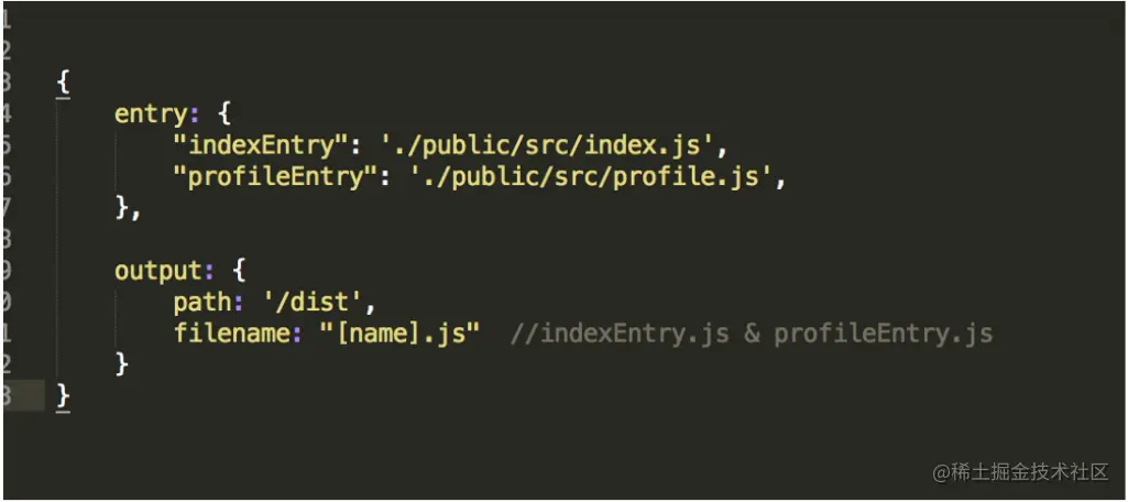 以下的配置将会生成两个js bundle文件,indexEntry.js和profileEntry.js分别应用于index.html和profile.html中