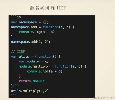 立即执行函数 安全 引入依赖 注入 script请求多 依赖模糊 难以维护 模块化规范: 1、全局function模式 2、namespace模式 3、iife模式 4、iife增强模式