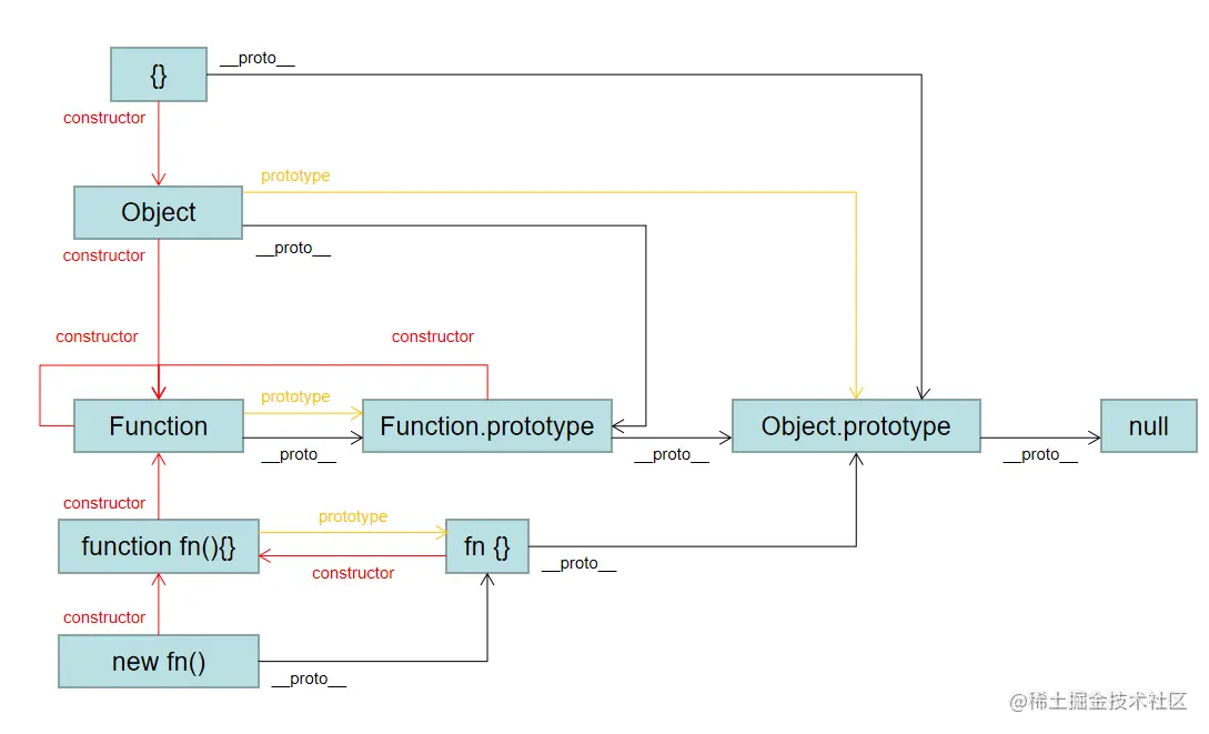 JavaScript原型关系图 Simplyme0823 2021-01-14 225 阅读1分钟 1. 只有函数才有prototype属性 2. Function对象比较特殊 3. 任何对象都有__proto__属性,__proto__相当于constructor.prototype