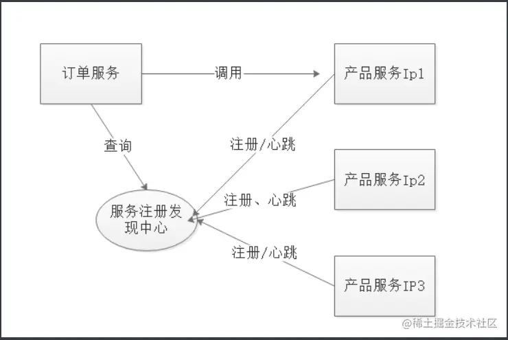 产品服务启动了三个,他们都会去注册中心进行注册,注册成功后,会通过心跳包告诉注册中心是否在线或者下线,而订单服务要去调用产品服务,会先去注册中心进行查询,查询出相应的地址然后再去调用产品服务。