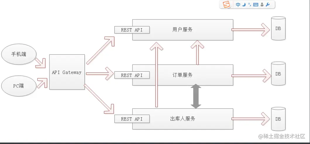 讲到这里,对微服务的概念应该有了一定的了解,下面画的一个比较简单的微服务架构图